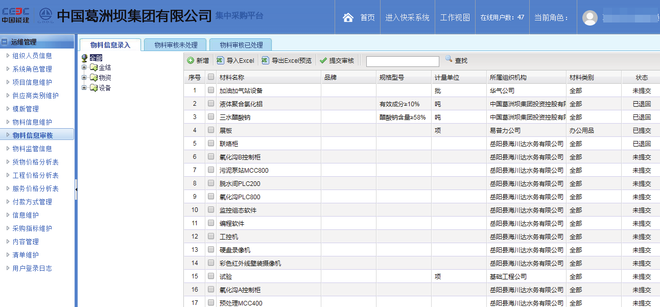2013 年 10 月进行试用版本应用。初步建立网上在线招标工作模式。2014 年 10 月进行正式标准版本应用。修订试用版本期间的应用模式,并加强供应商管理以及在线评标模块的应用。2015年 12 月进行签署定制化升级维护协议。主要涉及平台首页改造、平台的本地部署、微信端应用、PPP 分包商专项模块、营改增政策适应等方面。2016 年 3 月完成系统本地部署。2016 年 6 月微信端公众号及在线审批上线。2016 年 7 月专业化监督提醒模块上线。截止 2017 年 5 月,集团内部注册用户 6200 余人,葛洲坝所属单位线上招标累计完成 18000 余次,供应商总量 4万余家,每年上线涉及金额约 400 亿元。