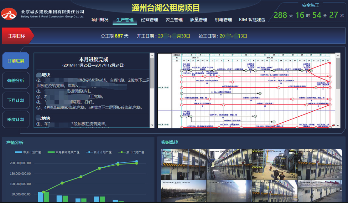 本工程使用了6686体育斑马进度、形象进度视频监控以及生产要素(劳务人员等)实时分析。同时,在智慧工地平台还对进度概况,如时间进度管理,视频监控,生产要素分析等进行了数据整合。